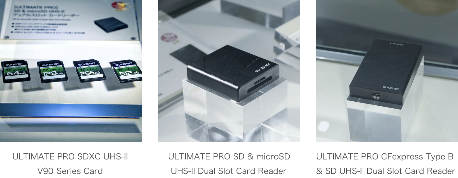DGP金賞受賞製品のショーケースには、国内外で高い評価を受け4年連続で「DGP Imaging Awards」⾦賞を受賞している ULTIMATE PRO SDXC UHS-II V90 Series Card を展⽰しました。