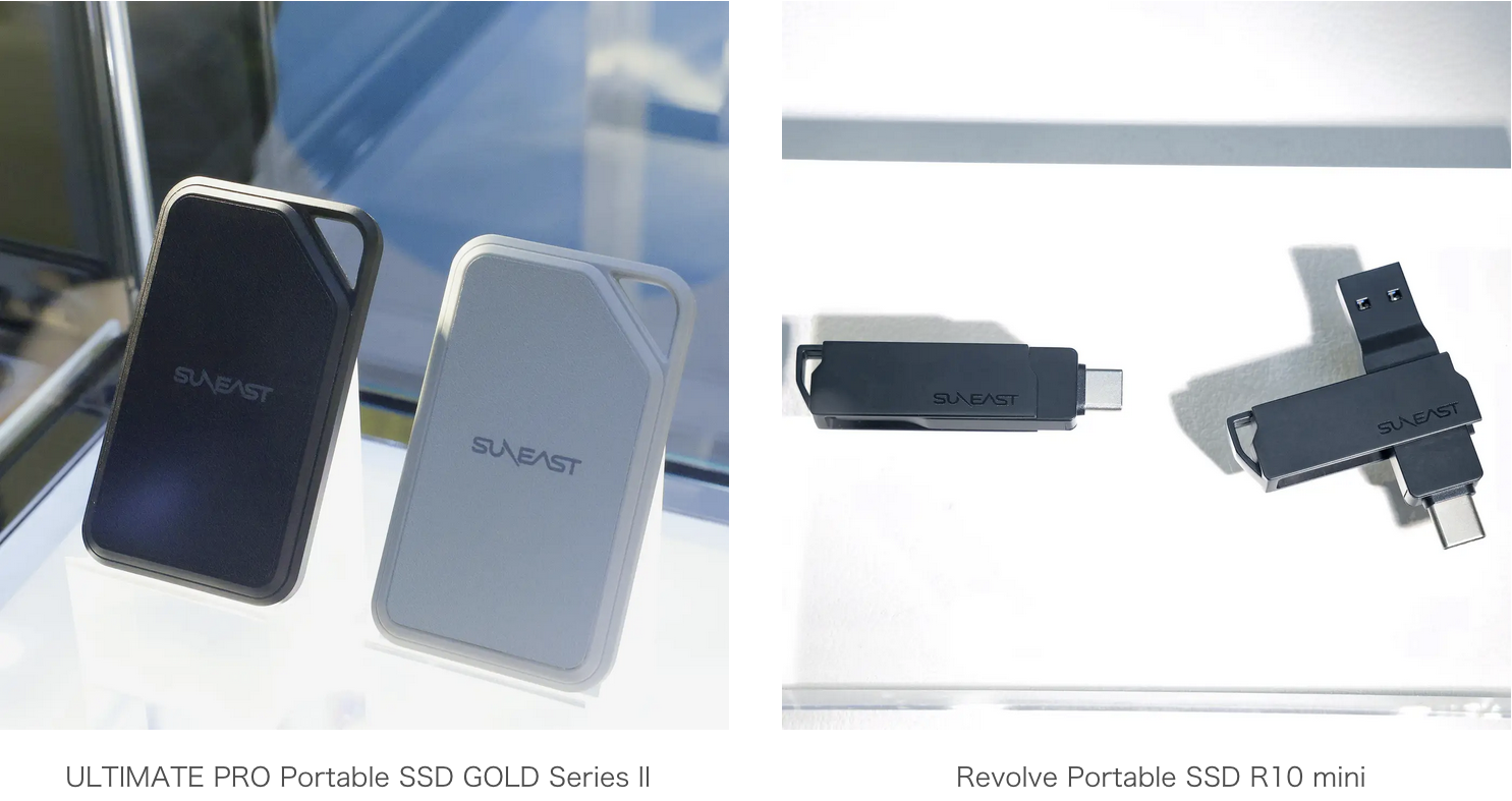 クリエイター向けのコーナーでは、本年中の発売を予定している Gold Series II ポータブルSSD と R10 mini ポータブルSSD を展⽰。両モデルは前世代と⽐べてサイズが⼤幅にコンパクト化されており、携帯性を⼤きく向上しています。