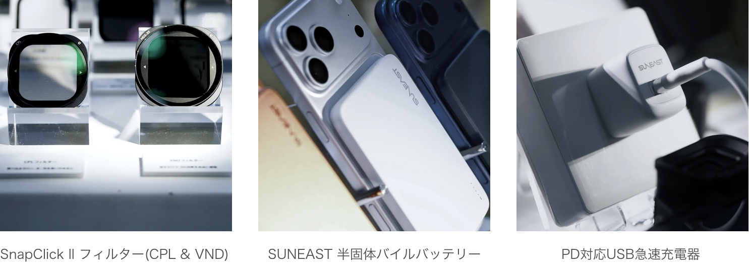 またスマートフォン撮影を支えるアクセサリーとして、すでに発売中のPD30W 世界最小クラスの急速充電器や、4⽉末発売予定の世界最薄半固体バイルバッテリーも紹介。スマートフォン撮影ユーザーに向けて、より軽く、より自由に持ち運べるモバイルクリエイション環境を提案しました。
